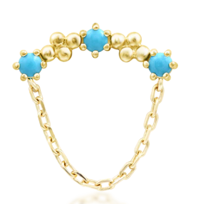 Like Harlow with beautiful beading and luminous synthetic Turquoise stones but adorned with a flowing chain.